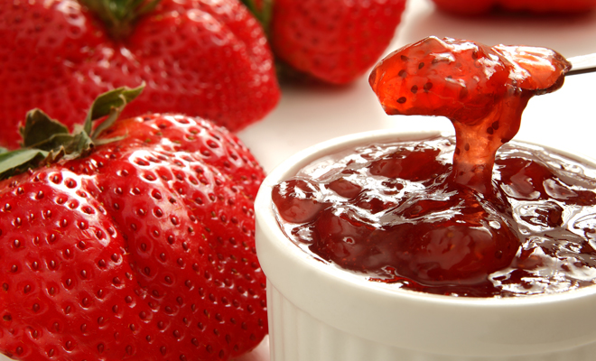 - Mermelada de fresa: Contiene antocianinas que son beneficiosas para las enfermedades coronarias, por ser antiinflamatorias y antitumorales. También es buena para la agudeza visual, al igual que la mermelada de mora y arándanos.