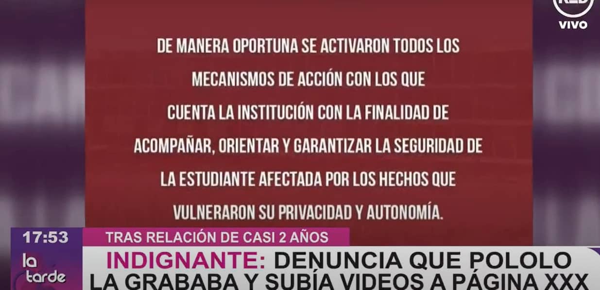 La institución universitaria aseguró que "se activaron todos los mecanismos de acción con los que cuenta la institución con la finalidad de acompañar, orientar y garantizar la seguridad de la estudiante afectada por los hechos que vulneraron su privacidad y autonomía".