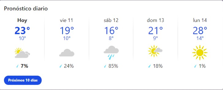Sin embargo, durante el fin de semana The Weather Channel estableció que la capital podría presentar tener lluvia para este sábado y domingo. Incluso esta última jornada, estaría acompañada de tormentas eléctricas. En Valparaíso solo llovería el sábado, mientras que en el sur, precipitaría intensamente durante prácticamente toda la semana.
