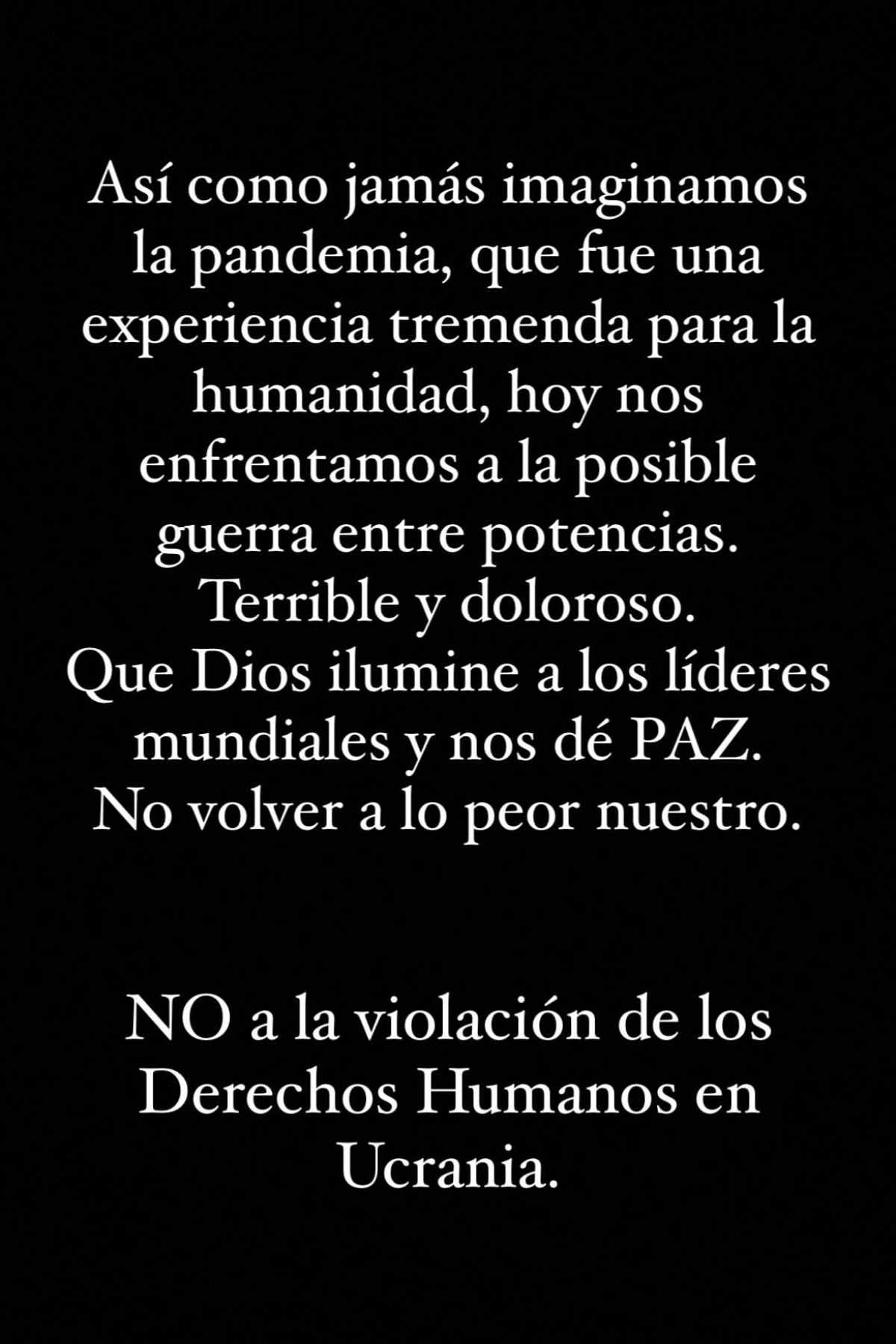"Así como jamás imaginamos la pandemia, que fue una experiencia tremenda para la humanidad. Hoy nos enfrentamos a la posible guerra entre potencias", comenzó escribiendo.