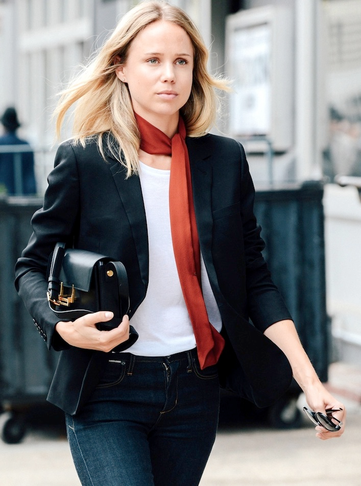 - El combo más básico de todos: el pantalón negro y la camisa blanca. Como son dos prendas para la guerra, prioriza aquellas que sean de buena calidad, créeme que a la larga te ahorrarás dinero y exudarás estilo sin mayor esfuerzo. ¿Cómo se personaliza? Con los accesorios, pero no con cualquiera. Esta temporada es el turno de los 'ribbon' o cintas para el cuello y los pañuelos con sus infinitas posibilidades. Aprovecha de agregar color y textura en estos puntos de atención.