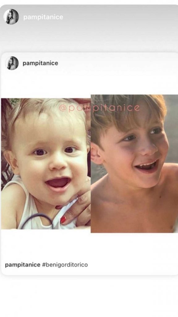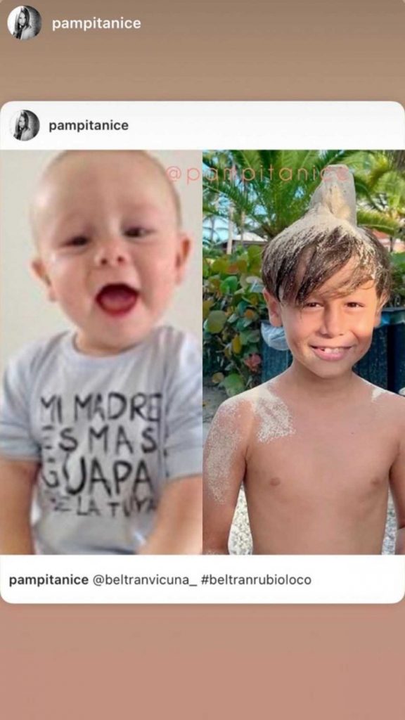 Fue una cuenta de fans en Instagram quien hizo una comparativa de los tres hijos de Pampita y Vicuña con fotos de bebés y de cómo están ahora. Por eso, Pampita decidió llevar esas fotos a sus historias de su cuenta de Instagram, plataforma donde suma más de 7 milllones de seguidores: