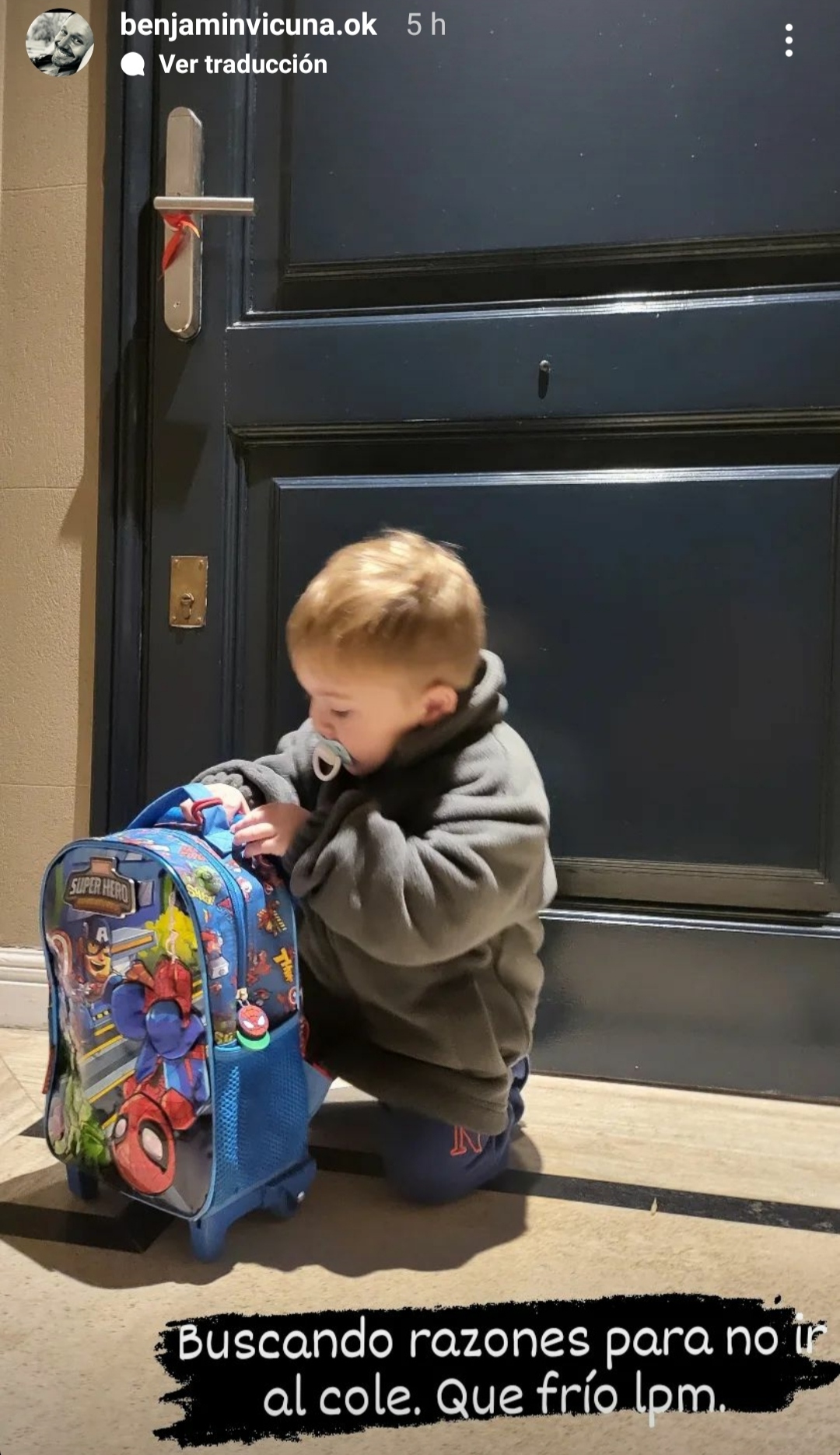 "Buscando razones para no ir al cole. Qué frío lpm", agregó el actor de 43 años junto a una instantánea del más pequeño del clan.