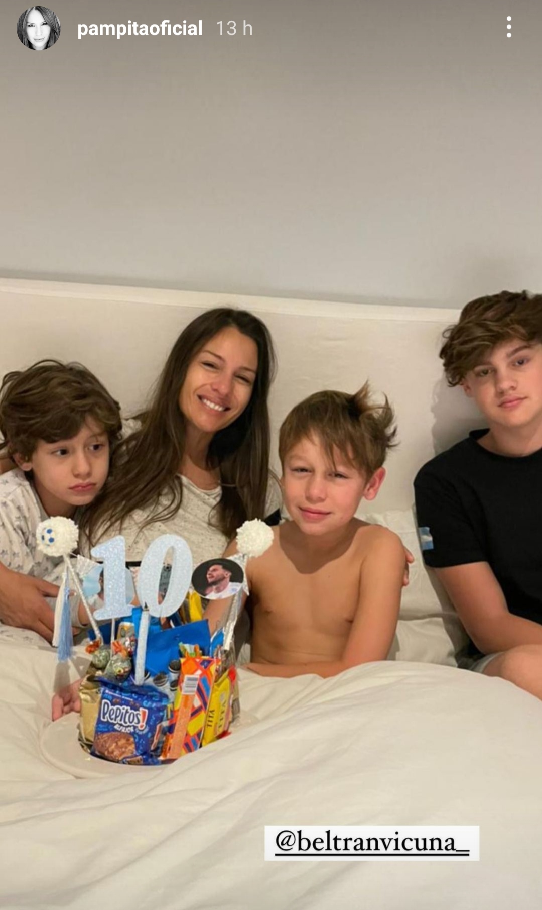 Mientras que Pampita mostró en sus historias que comenzó el día despertando a Beltrán con una torta, para luego cantarle el feliz cumpleaños junto a sus hermanos.