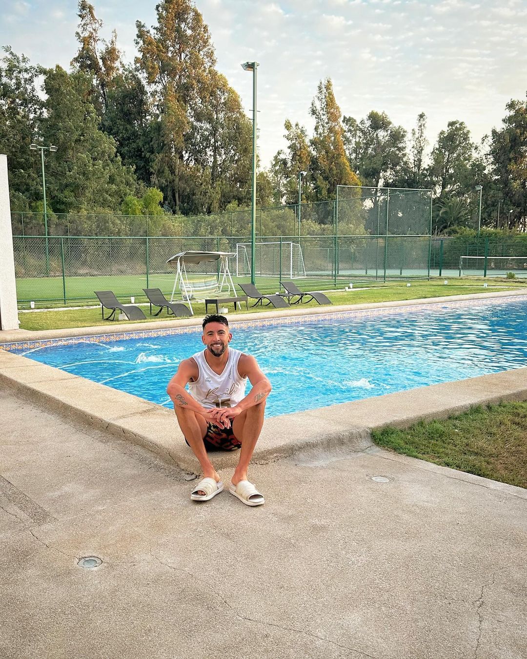 Según lo que se puede observar en las fotos, el ex seleccionado nacional aparece sentado en el borde de su gigantesca piscina.