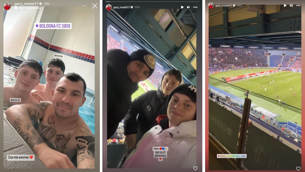 “Con mis amores”, escribió el futbolista en una de sus historias mientras se le podía observar a él junto a Alejandro y Gary en una piscina del Bologna FC.