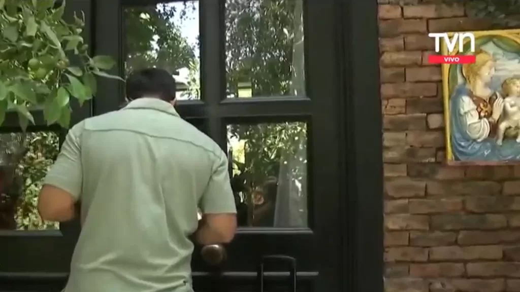 Así, el notero mostró cómo es el ingreso a la casa de la animadora, donde al costado de la puerta destaca una especie de figura de la Virgen María.