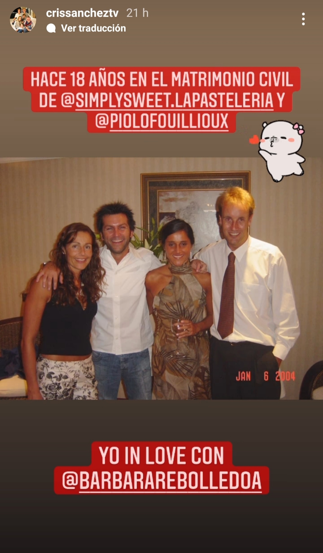 'Hace 18 años en el matrimonio civil de @simplysweet.lapasteleseria y @piolofoilloux. Yo in love con @barbararebolledoa', escribió Cristián Sánchez para acompañar la postal.