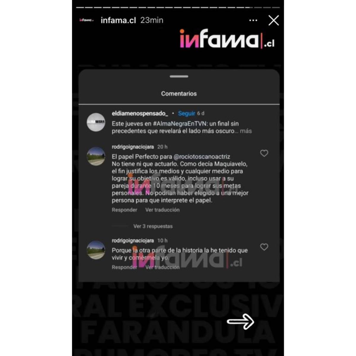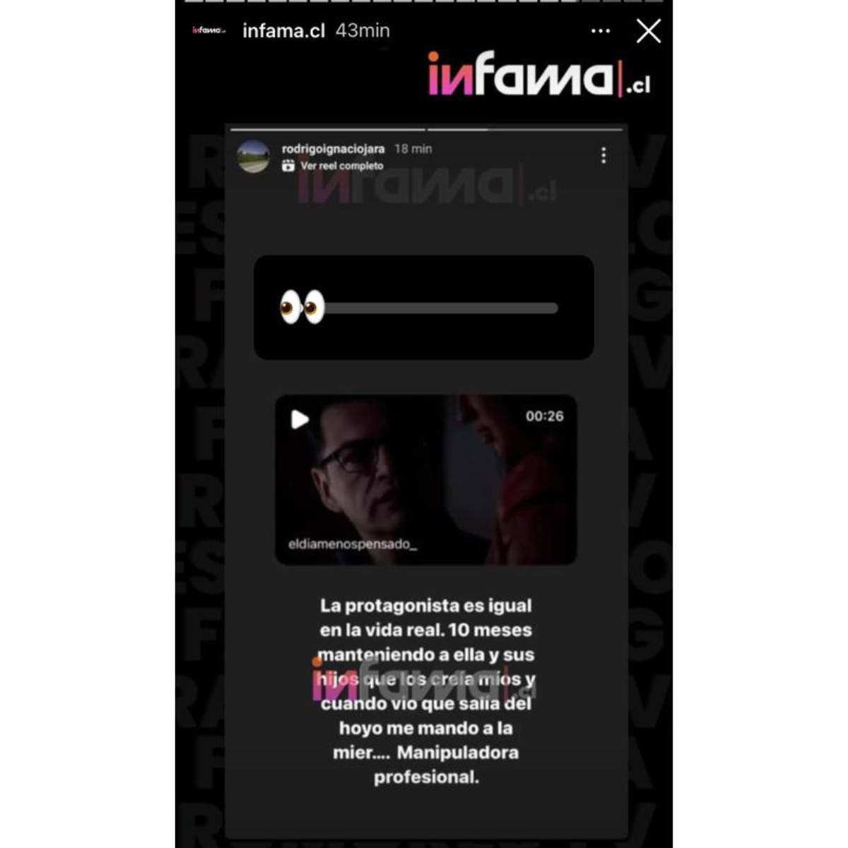 "La protagonista es igual en la vida real. 10 meses manteniendo a ella y sus hijos que los creía míos y cuando vio que salía del hoyo me mandó a la mier… Manipuladora profesional", dijo sobre Rocío Toscano en una publicación.
