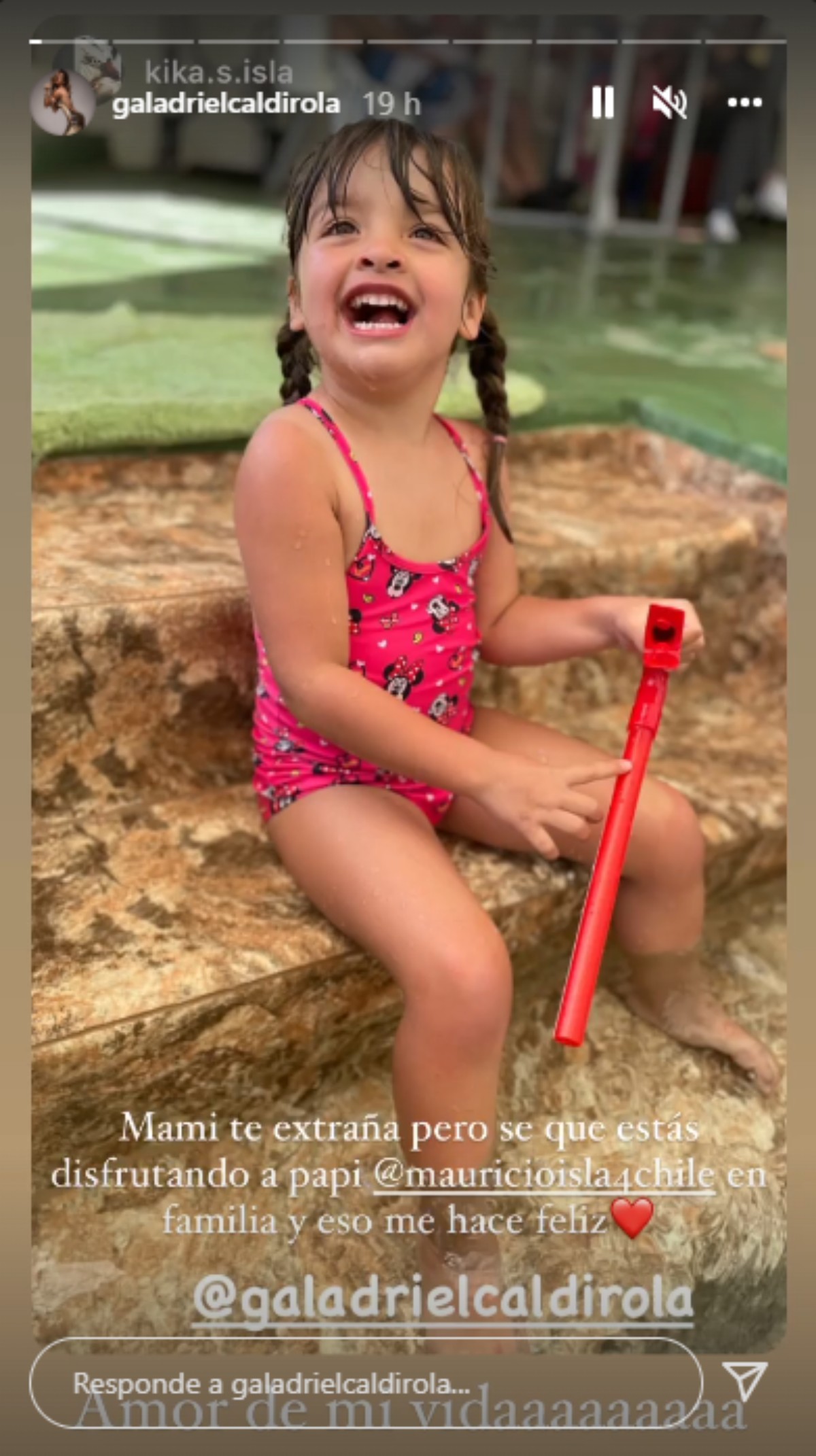 "Mami te extraña, pero sé que estás disfrutando a papi @mauricioisla4chile en familia y eso me hace feliz. Amor de mi vida", escribió Gala Caldirola en sus historias.