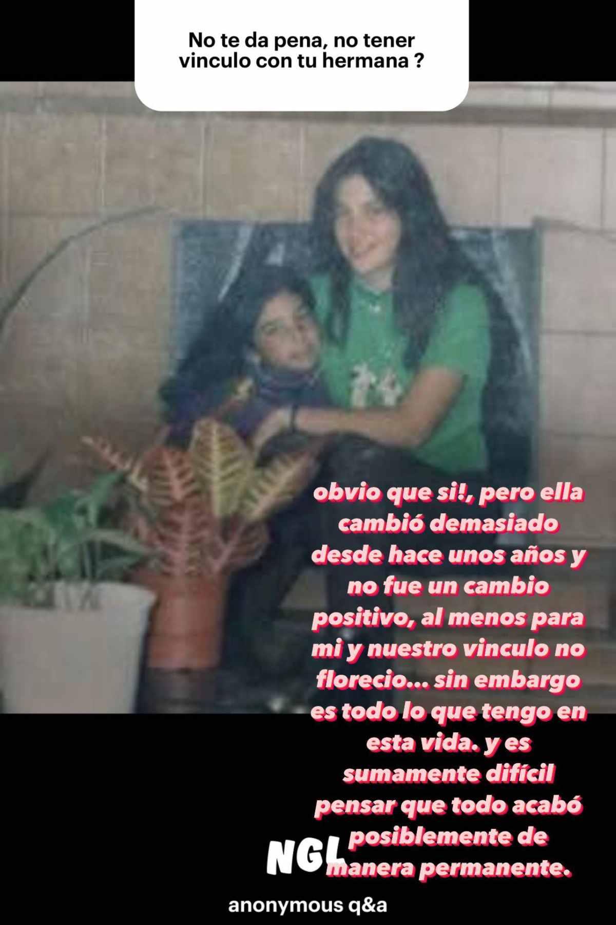 Recordemos que el pasado Día de la Madre ambas empezaron a enviarse fuertes mensajes luego que la hermana de la cantante saliera en defensa de su madre.