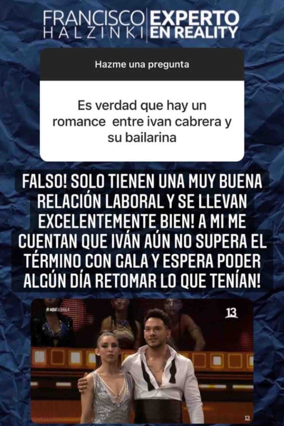 "¿Es verdad que hay un romance entre Iván Cabrera y su bailarina?", fue la consulta que le llegó al comunicador en una dinámica de preguntas y respuestas.