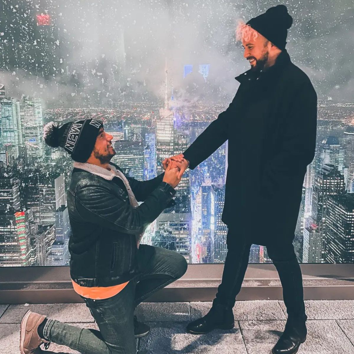 Junto a la imagen, Cesár Antonio Campos escribió que "ahora que es ley el matrimonio igualitario. Y que la noticia nos encontró de vacaciones en Nueva York (Estados Unidos), vuelvo a preguntarte, Diego Barrios, bajo esta hermosa noche nevada y con mucha más convicción: ¿Quieres casarte oficialmente contigo?".