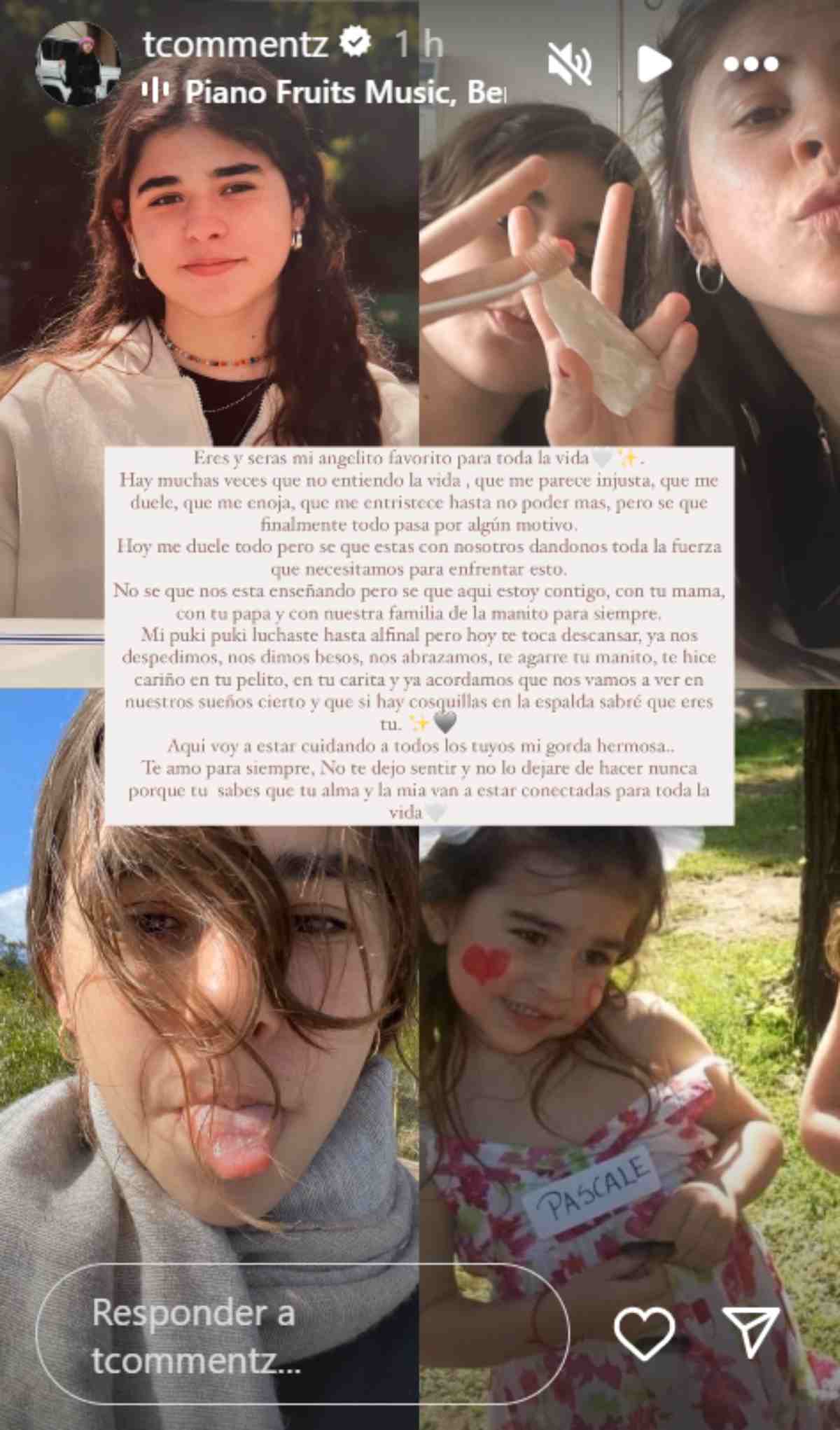 Luego Teresita Commentz dio a entender que su cercana estaba pasando por algún problema de salud:: “Mi puki puki luchaste hasta al final, pero hoy te toca descansar”.