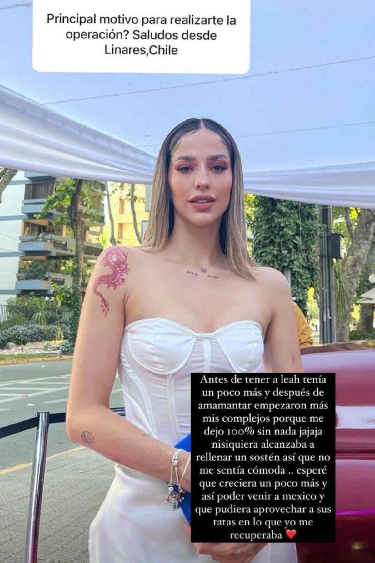"Antes de tener a Leah (su hija) tenía un poco más y después de amamantar empezaron más complejos porque me dejó 100% sin nada jajaja. Ni siquiera alcanza a rellenar un sostén, así que no me sentía cómoda", explicó Fer Figueroa.