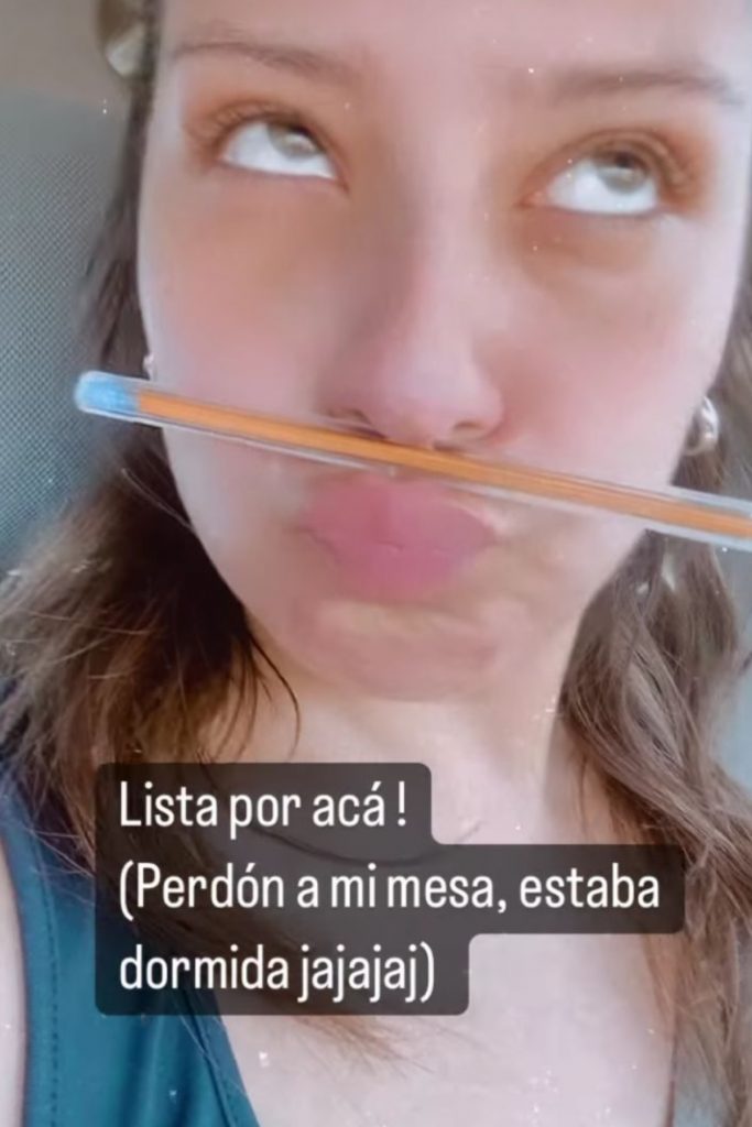 Con una selfie y una cara chistosa, la actriz María José Quintanilla dio un simpático mensaje en su historia de Instagram. "Lista por acá! (Perdón a mi mesa, estaba dormida jajajaj", escribió.