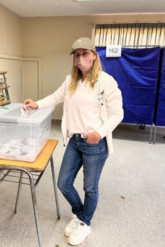 La Ex Miss 17, Pata Larraín publicó una foto en la que posó con un outfit casual y un jockey junto a la urna mientras ingresaba su voto. "Deber cumplido!", escribió en la descripción.