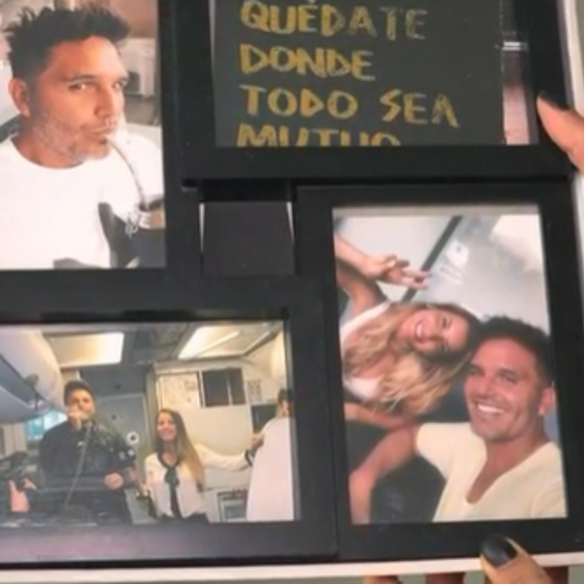 "Este regalo fue cuando empezamos a salir. En la foto estábamos en un viaje, fuimos a Argentina cuando trabajábamos juntos. Éramos amigos, él me hablaba de su pareja, yo le hablaba de la mía. Y esta frase me la dijo en un momento en que estaba muy triste "quédate donde todo sea mutuo" y es verdad, con él todo es mutuo", siguió comentando Lucila Vit.