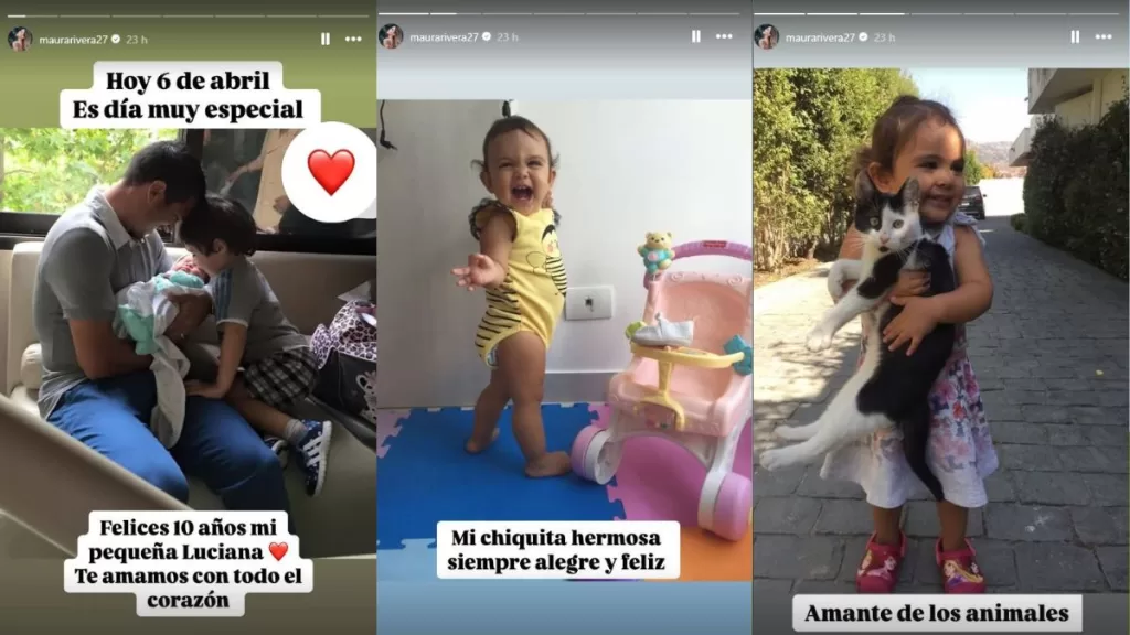 "Talentosa, buena hija" y "Lu. Felices 10 años mi vida chiquita que sea siempre feliz", añadió en sus historias Maura Rivera.