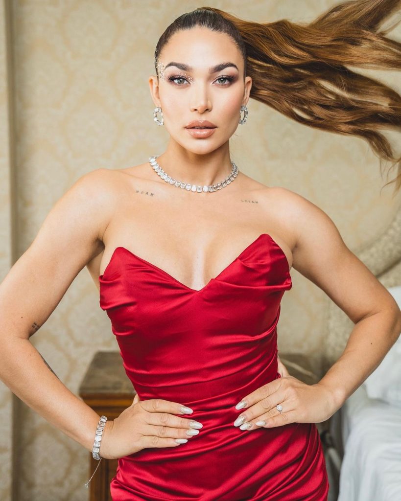 Se trata del resultado de una impactante producción fotográfica donde Lisandra Silva posó con u vestido rojo y sus tatuajes al descubierto: