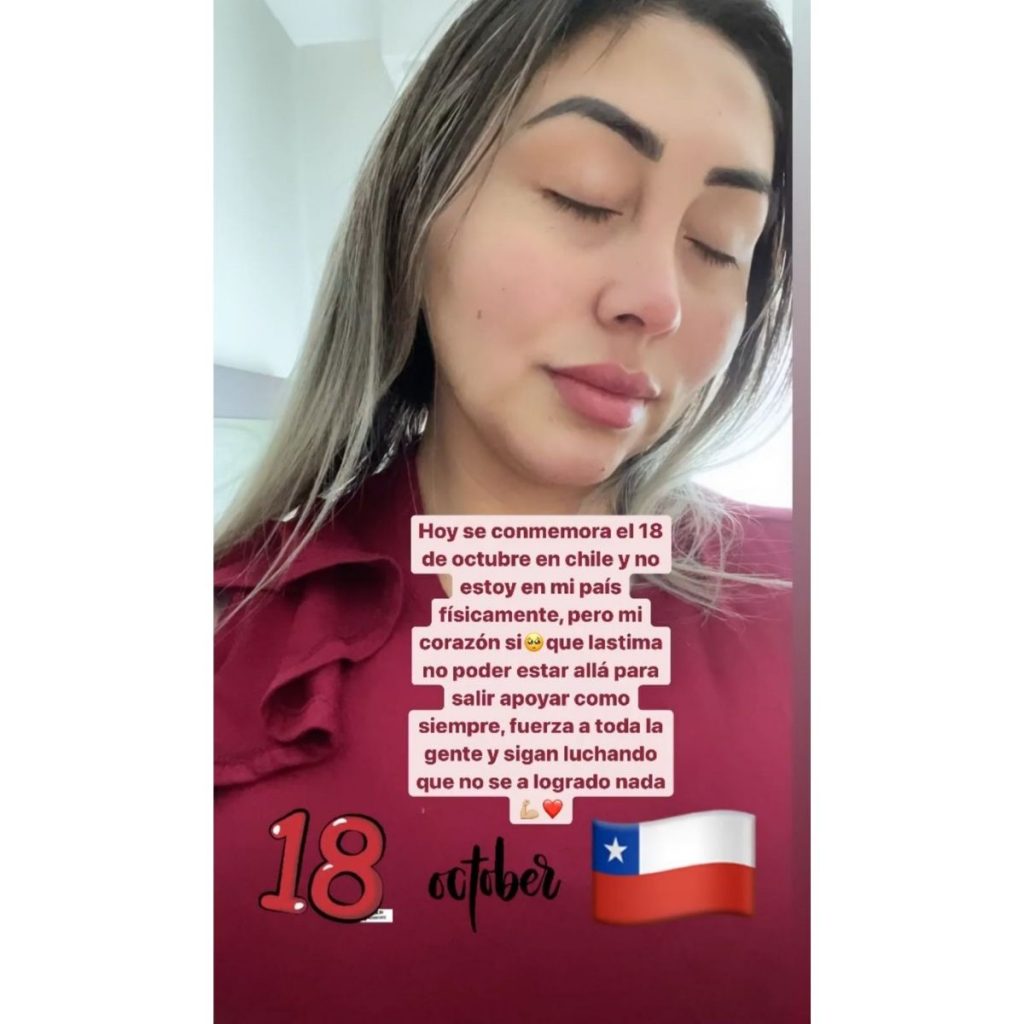 “Que lastima no poder estar allá para salir apoyar como siempre”, confesó la influencer chilena.