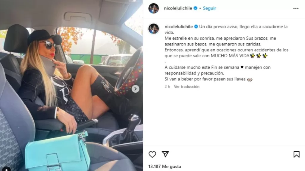 “A cuidarse mucho este Fin se semana ♥️ manejen con responsabilidad y precaución. Si van a beber por favor pasen sus llaves”, agregó posteriormente posando en su auto y en otros lugares, llamando la atención de usuarios en la web.