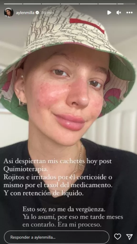 A pocos minutos de terminar el video con la noticia, Aylén Milla compartió un mensaje por historias de Instagram donde dejó un especial mensaje: "Esta es mi piel realmente, arde y pica un poco... Fuerza para todas las que estén pasando por mi situación! Ahora quiero ayudarlas y motivarlas".