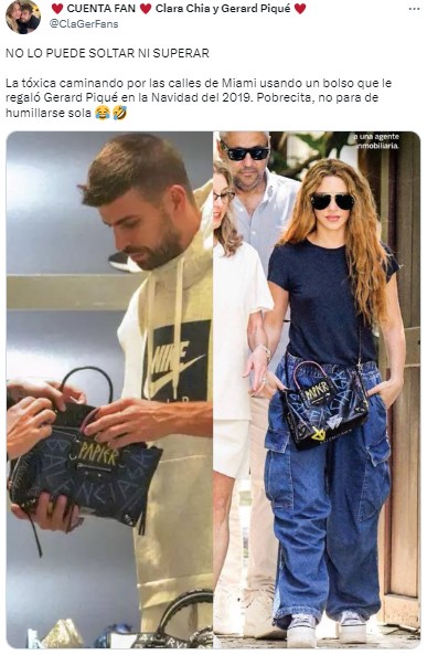 Que lo usara ahora, luego de toda la polémica, la puso en el ojo de las críticas en Twitter. Allí, usuarios escribieron cuestionamientos como: "La tóxica caminando por las calles de Miami, usando un bolso que le regaló Gerard Piqué en la Navidad de 2019. Pobrecita, no para de humillarse sola" y "nunca lo va a superar porque la cambiaron por una mujer anónima. Su ego es muy grande".