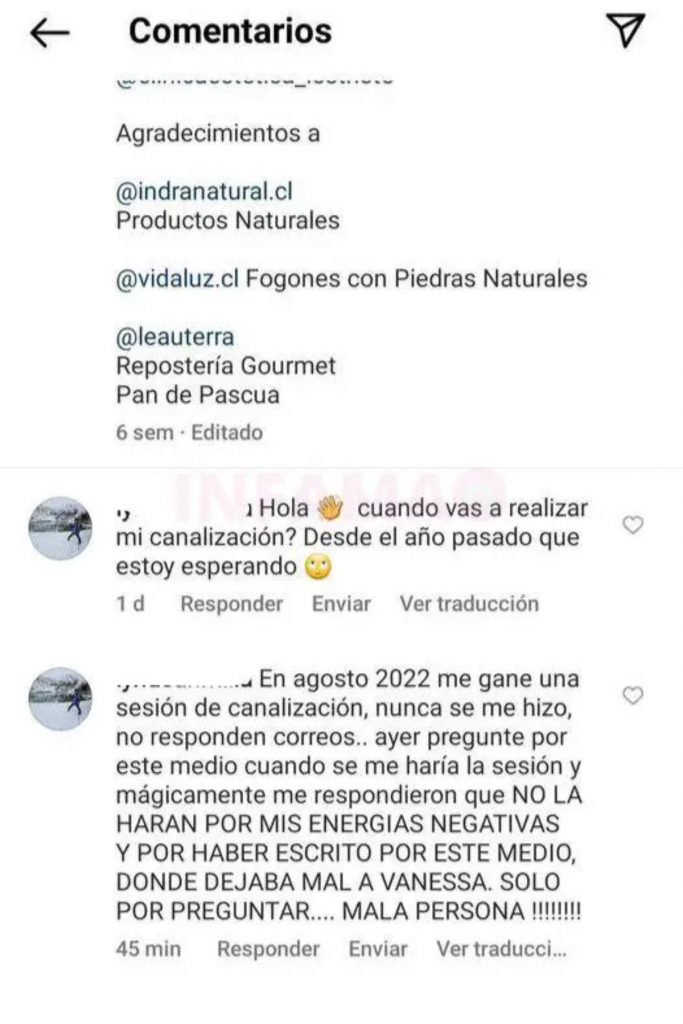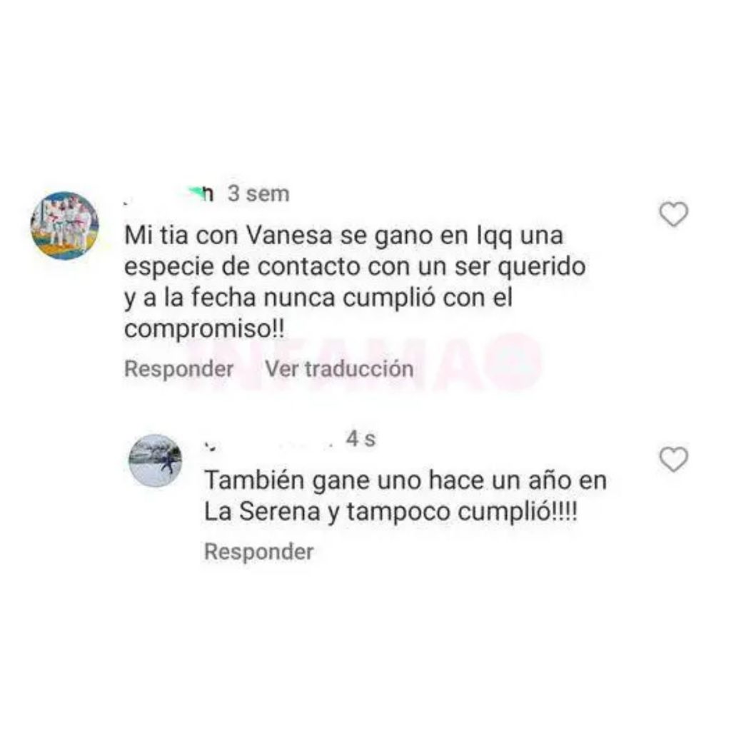 En ese contexto, una de las participantes señaló que hubo un incumplimiento por parte de Vanessa Daroch, debido a que se ganó una sesión de canalización, pero nunca se llevó a cabo.