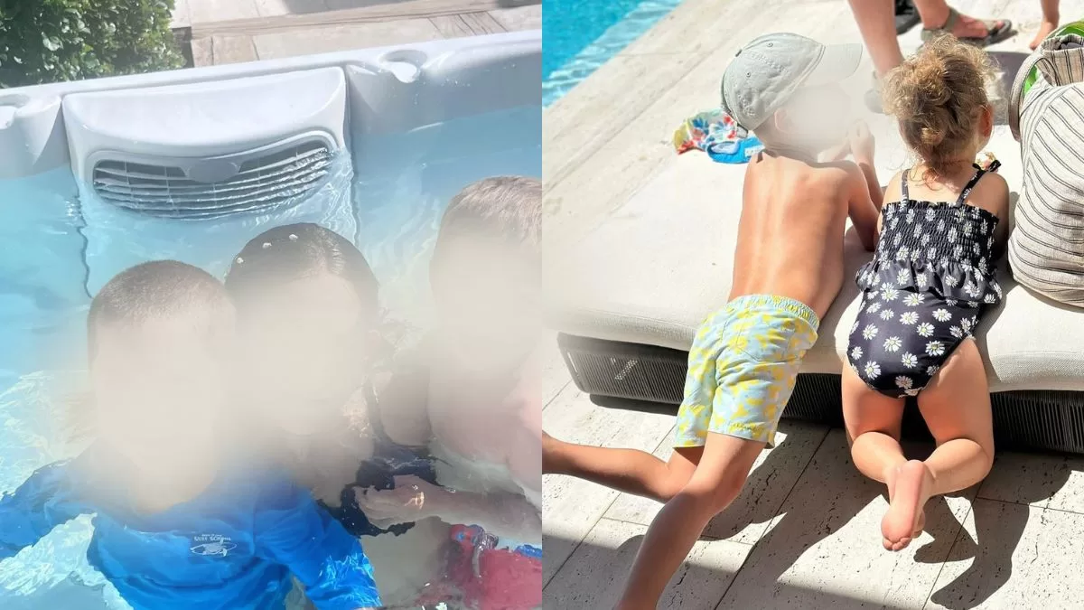 Además, también se puede apreciar a los nietos de José Patricio Daire en el jacuzzi de la casa de Cecilia; en otra postal aparecen jugando en la orilla de la piscina.