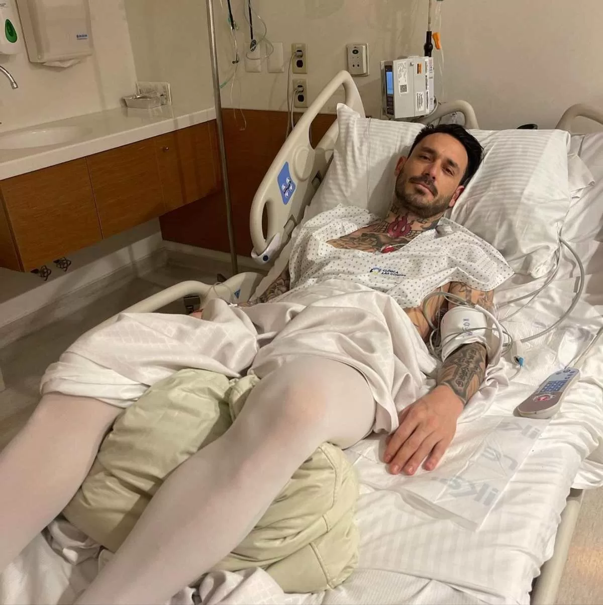 Así lo dio a conocer el ex futbolista en su cuenta de Instagram @pinigol9, donde compartió una fotografía en la que aparece en camilla.