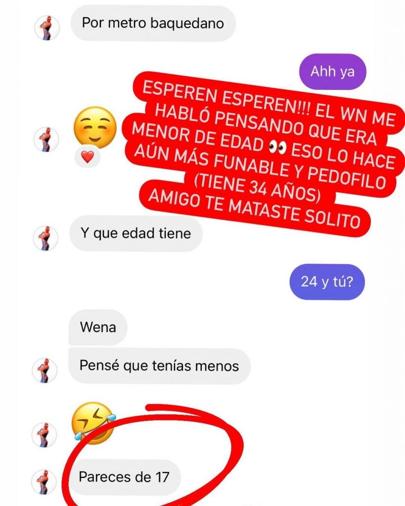 Luego, explicó que no tiene capturas de toda la conversación, porque Sensual Spiderman las eliminó. De esta forma, solo publicó las pruebas que alcanzó a guardar. “Esto lo hice porque es una figura pública y siento que se aprovecha de eso y de su imagen para hacer este tipo de cosas”, señaló.