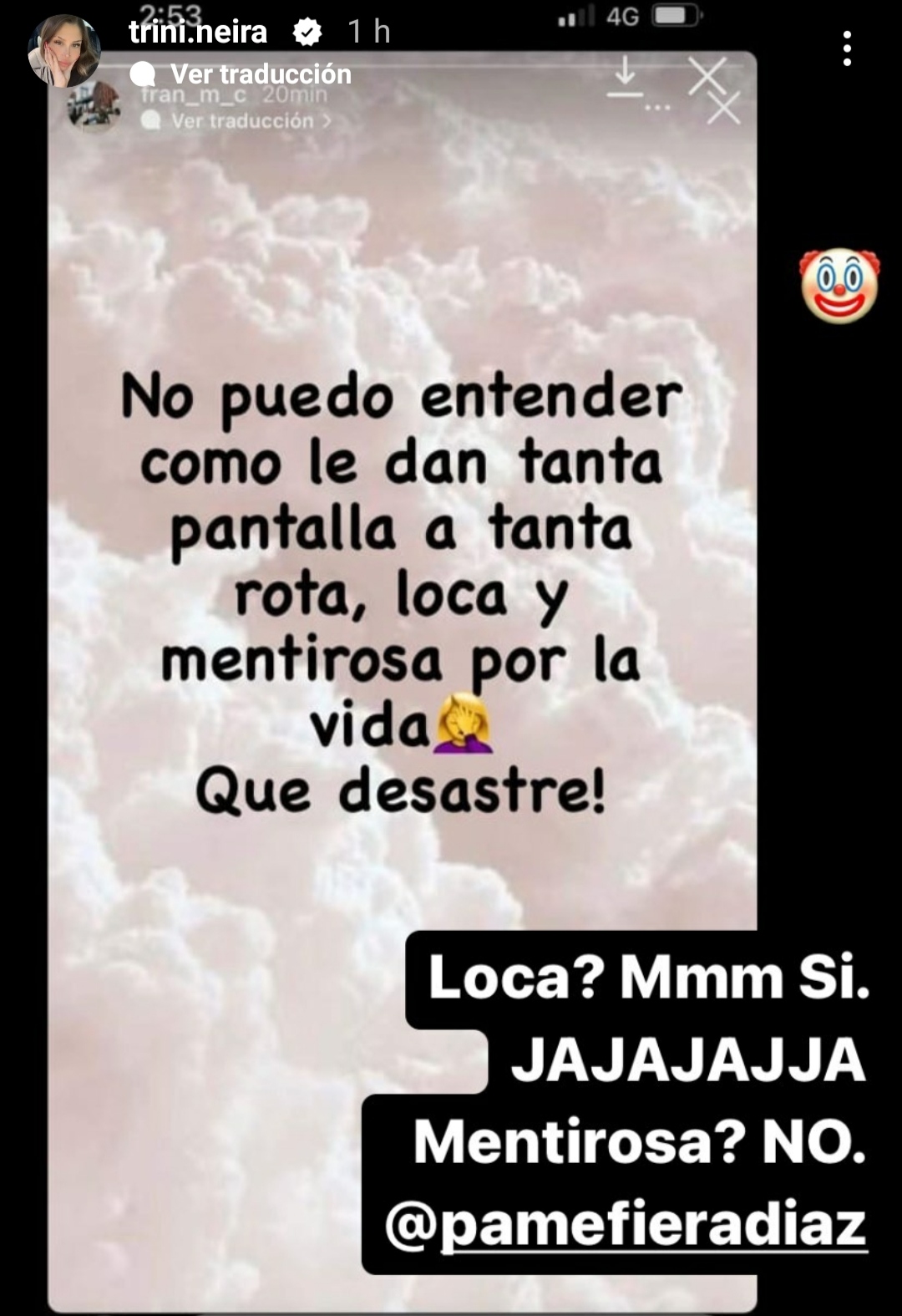 "No puedo entender cómo le dan tanta pantalla a tanta rota, loca y mentirosa por la vida. Que desastre!", escribió Francisca en sus Historias.