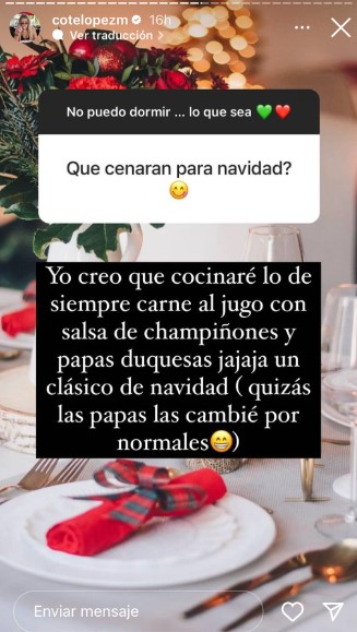 Todo ocurrió cuando uno de los seguidores de Coté López le preguntó en esta red social qué cenarán para Navidad, a lo que ella respondió con el menú navideño por el que optará:
