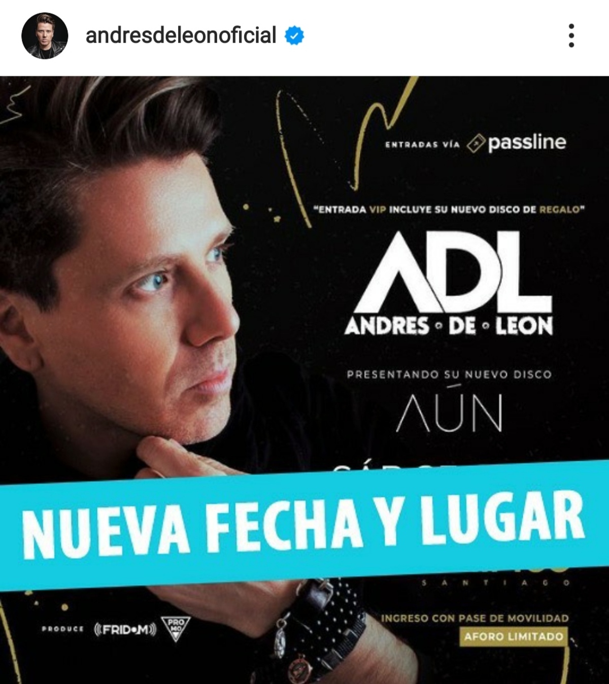 A través de sus redes sociales, Andrés de León anunció la reprogramación de su doble concierto.