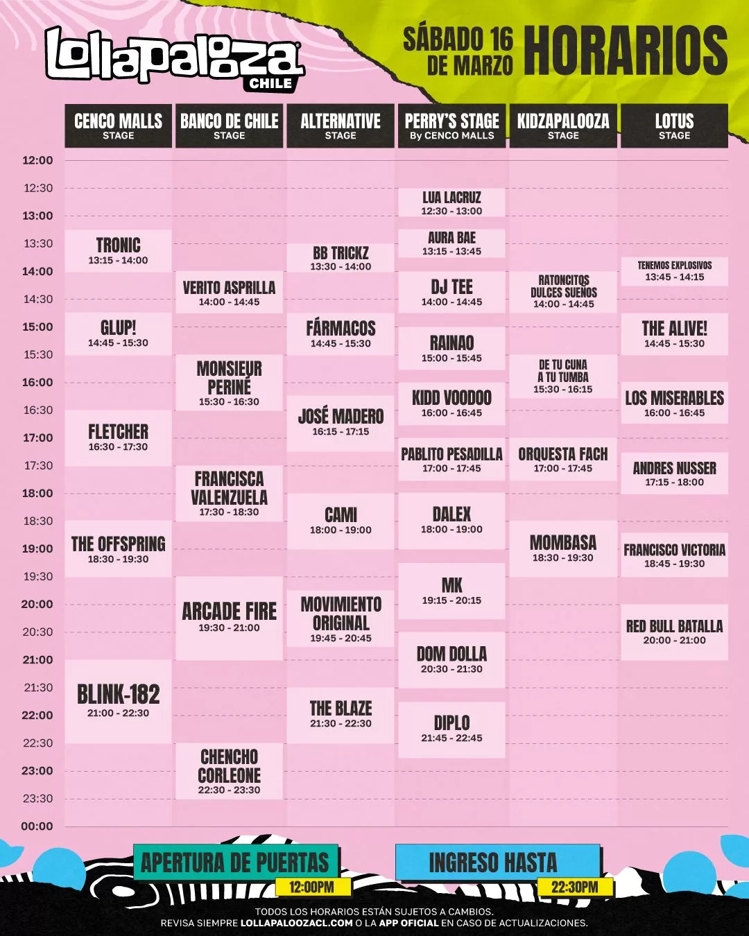 Lollapalooza Chile 2024: ¿En qué horario y escenario se presentará cada artista?