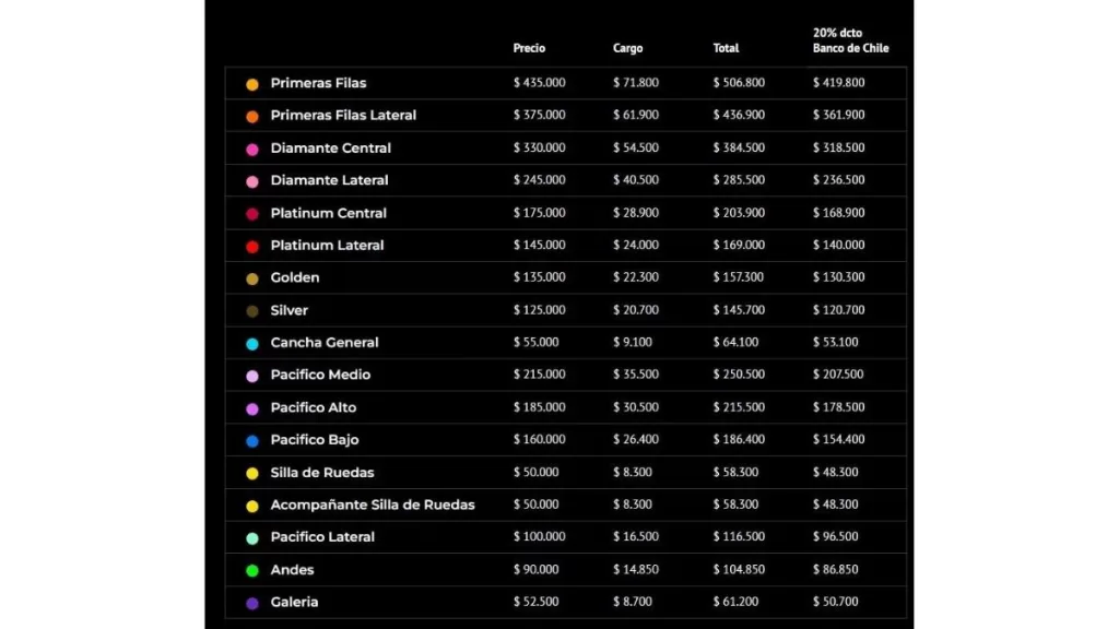 Los valores de los tickets para poder ver nuevamente al interprete de La incondicional, Suave, Amarte es un placer y Hasta que me olvides, van desde los $61.200 (galería) hasta los $506.800 mil pesos (primeras filas). Puedes adquirir tus tickets en el siguiente enlace.