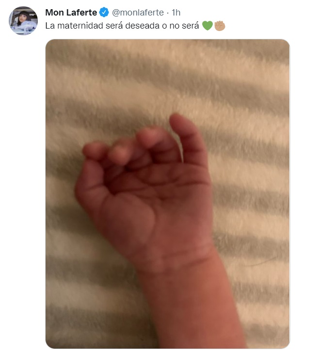 Pero Mon Laferte también compartió otra foto con el mismo mensaje en su cuenta de Twitter. Solo que ahora mostrando la manito de su guagua.