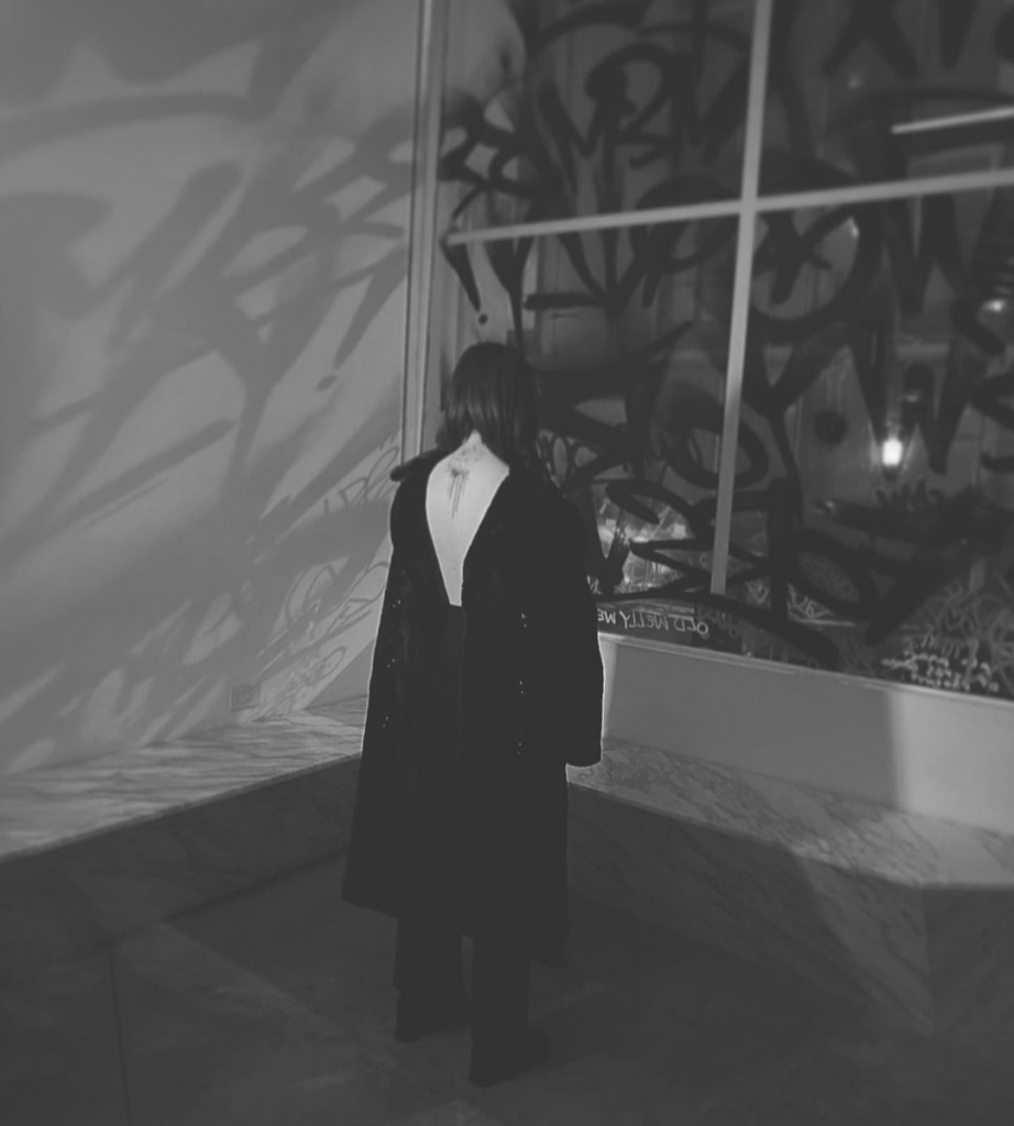 En la foto se puede observar a Selena Gómez, posando de espaldas con un abrigo al revés, que permitía lucir el nuevo tatuaje, que comienza desde su cuello y termina cerca del centro de la espalda, entre los omóplatos.