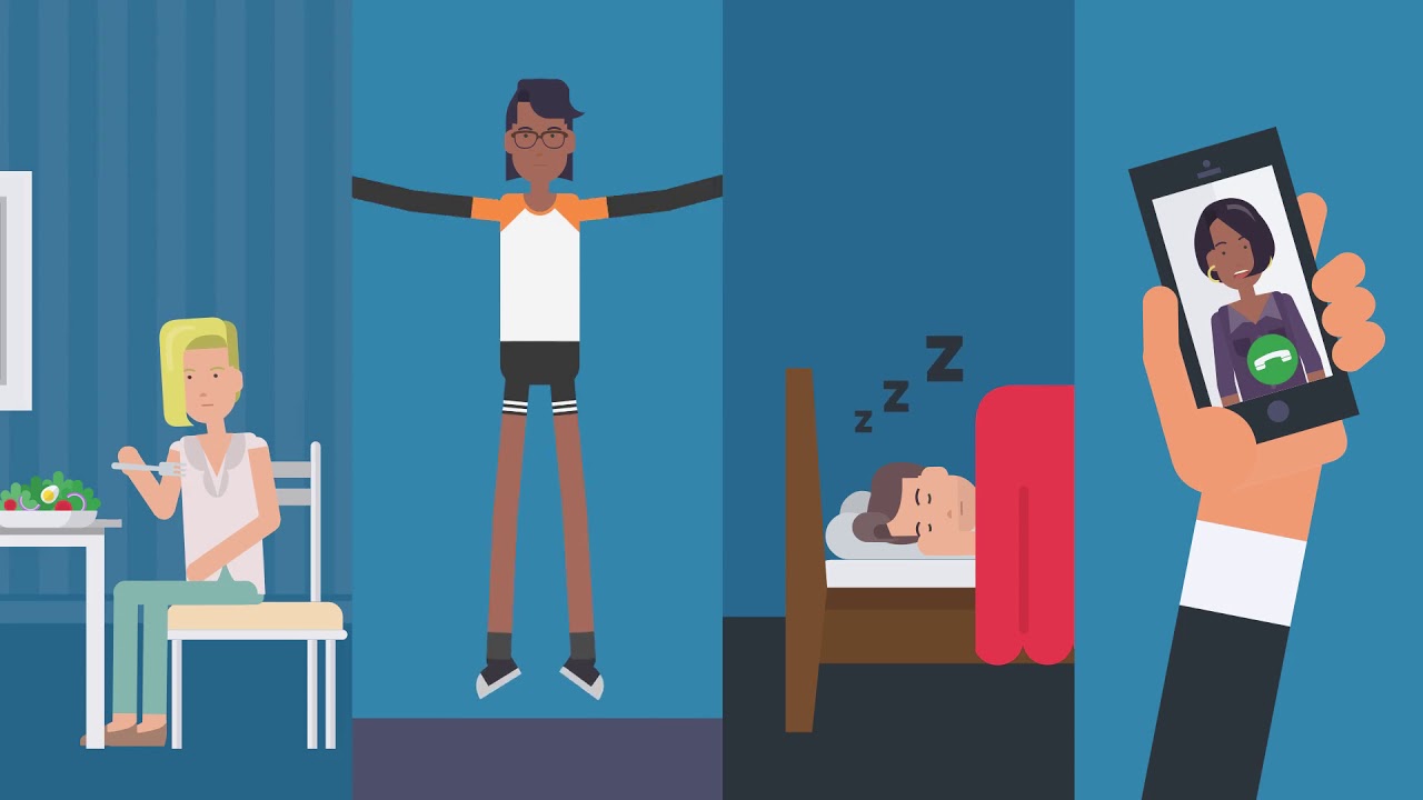 - Muévete, haz ejercicio, aliméntate bien y busca videos de relajación para hacer en casa.