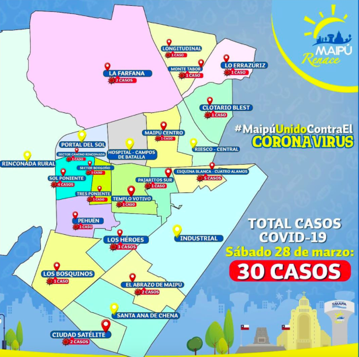 Además de ir mostrando a través de un mapa, los lugares de Maipú donde se encuentran personas contagiadas.