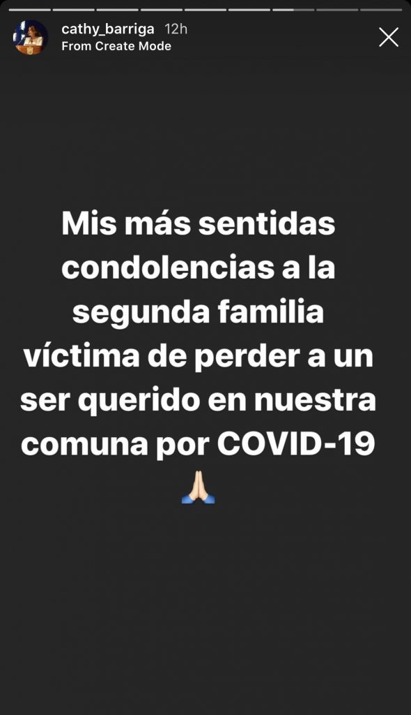 "Mis más sentidas condolencias a la segunda familia víctima de perder a un ser querido en nuestra comuna por COVID-19", escribió Cathy Barriga.