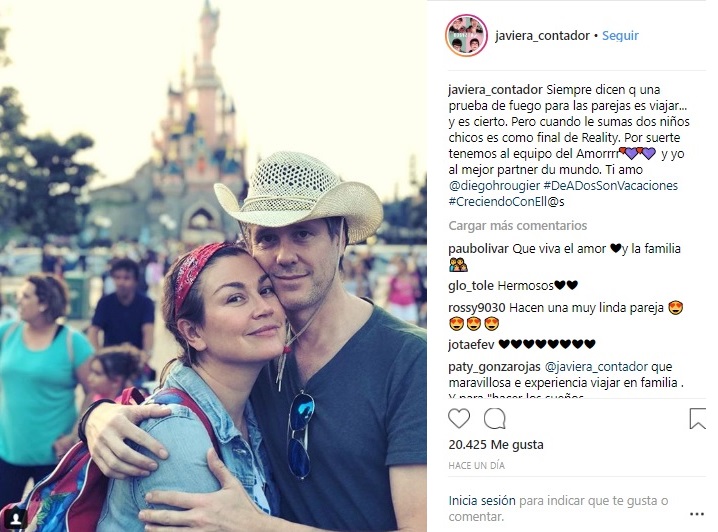 "Siempre dicen que una prueba de fuego para las parejas es viajar y es cierto. Pero cuando le sumas dos niños chicos es como final de reality. Por suerte tenemos al equipo del amor y yo al mejor partner du mundo", escribió Javiera para acompañar la publicación en la que posa junto al director de TV.