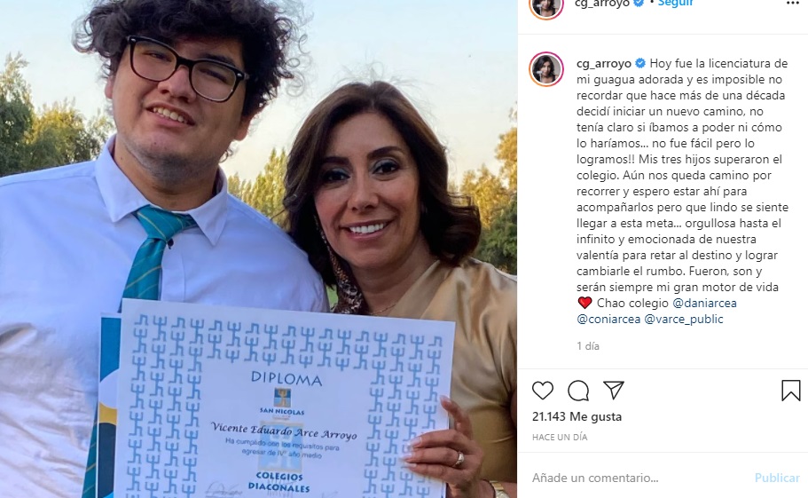 La querida abogada Carmen Gloria Arroyo no solo comparte en Instagram registros respecto a sus proyectos televisivos o de asesorías legales, sino que también de su día a día con su pareja, hijos o sus mascotas. Y esta vez subió una emotiva publicación por el logro de su hijo menor, Vicente.