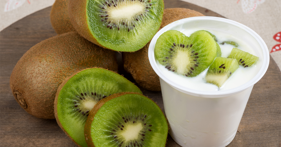Un kiwi maduro y una cucharada de yogur natural sin azúcar.