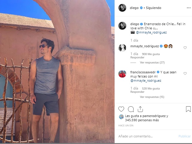 'Enamorado de Chile... Fell in love with Chile 🇨🇱...📷 @mmayte_rodriguez', escribió Boneta, etiquetando por primera vez a su pareja, quien le respondió con emoticones.