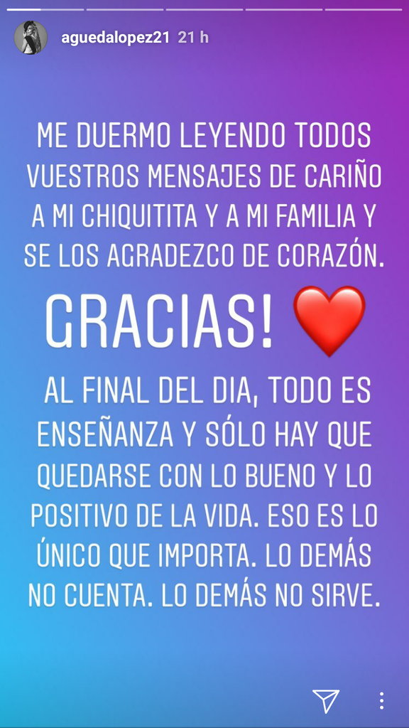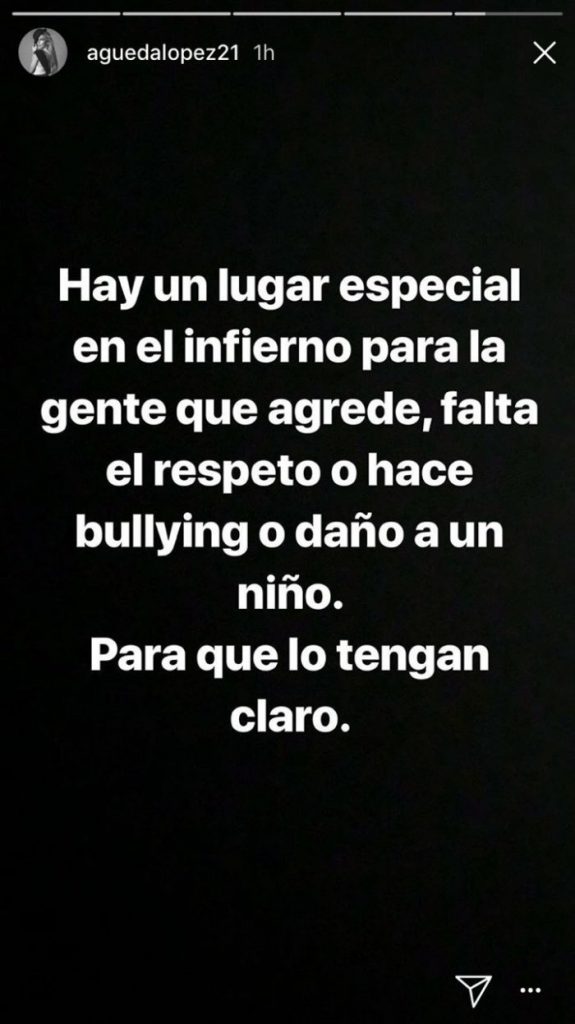 Tras el titular, Águeda respondió en redes sociales directamente a la periodista con el mensaje: "Mi hija es una niña sanísima, gracias a Dios. Lo que da muchísima tristeza es que una ‘periodista’ como tú necesite crear este tipo de noticias para hacer algo con su vida y con su carrera. Y, por cierto, antes de hablar de ella aprende a escribir su nombre y su edad".