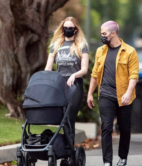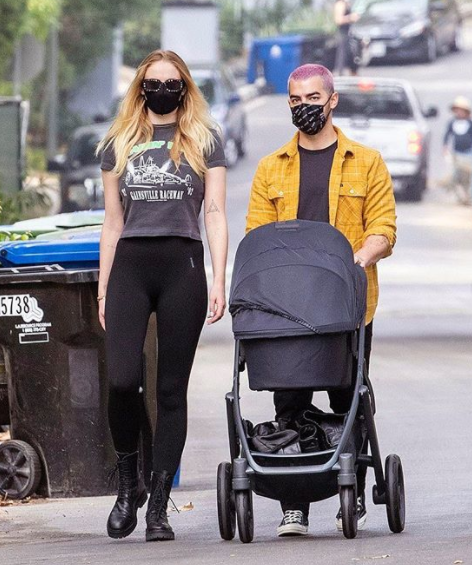 Gracias a estas fotografías pudimos ver por primera vez a Joe Jonas y Sophie Turner, en sus roles de papá y mamá, paseando a la pequeña de dos meses, en su coche.