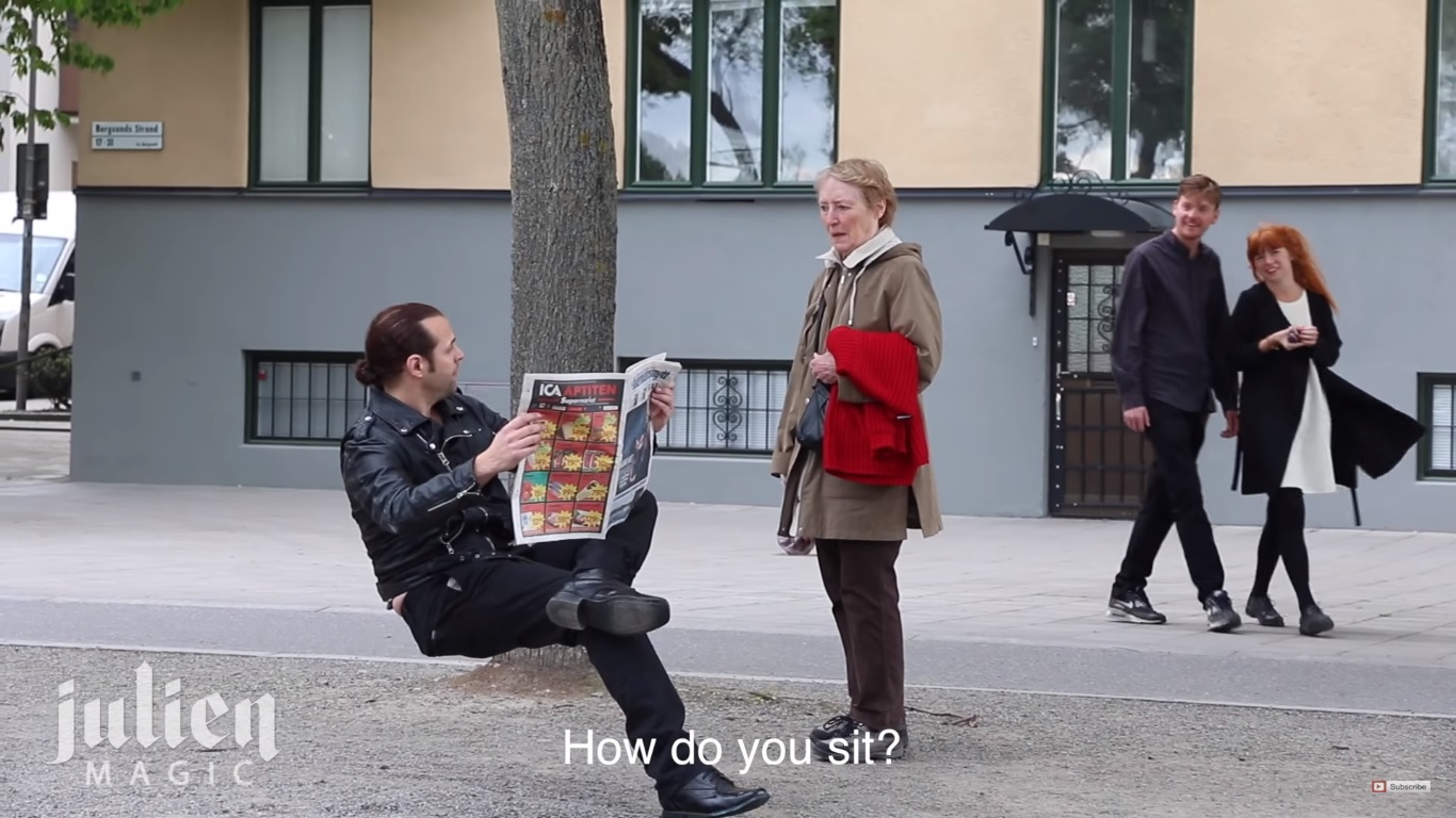 Esta vez, "Julen Magic" dejó a unos transeúntes anonadados con un truco. El mago mientras va caminando, se "sienta en el aire" para leer un diario.