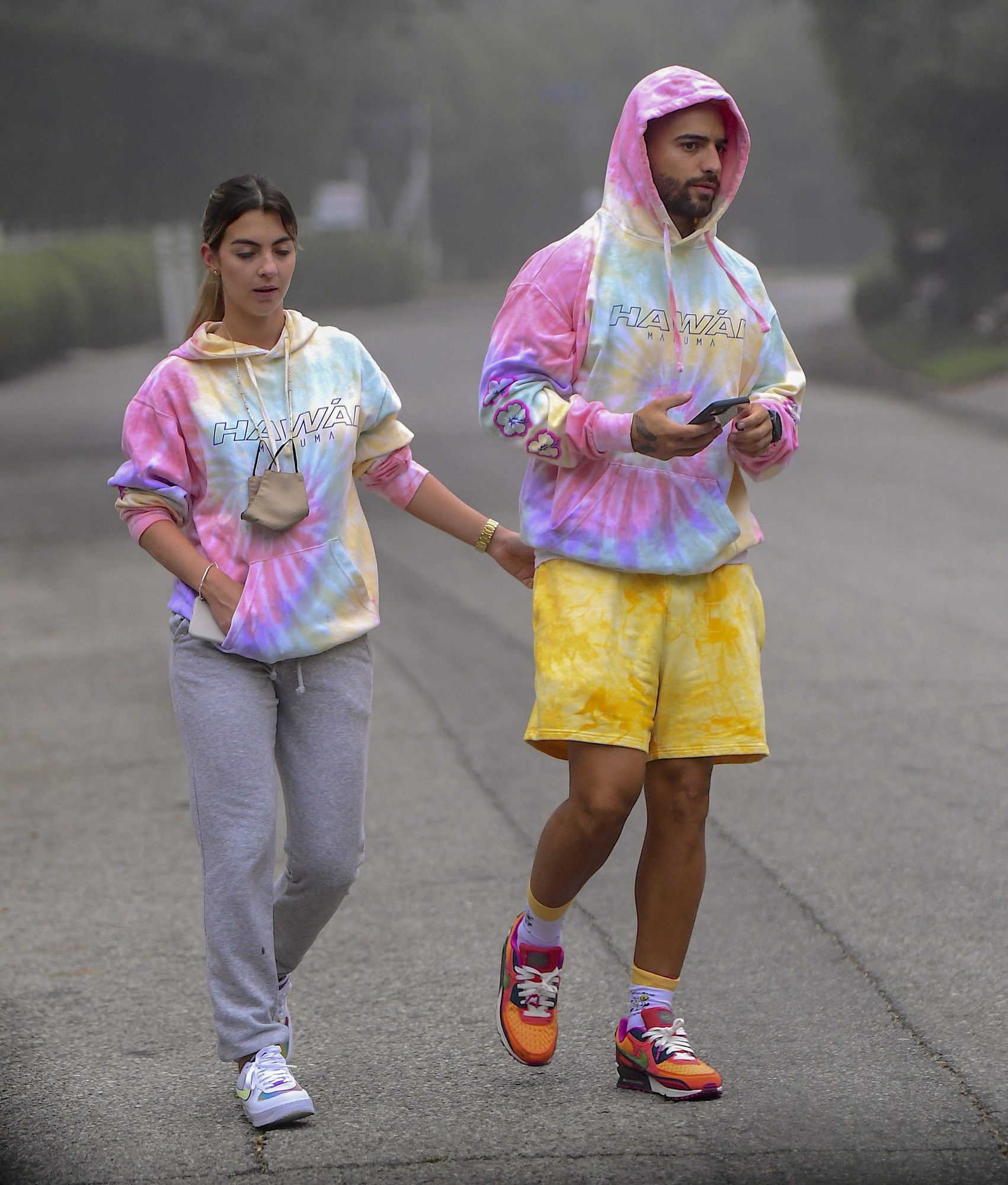 Además, la modelo y el cantante lucían un polerón 'Tie Dye' de colores, con la palabra "Hawái", haciendo alusión a uno de los últimos singles del colombiano, de su futuro álbum 'Papi Juancho'.